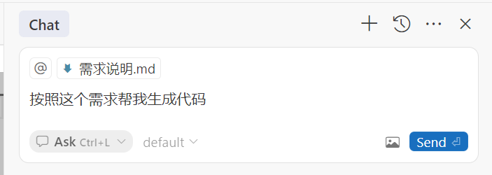 新建一个文件夹,并在里面新建一个需求说明文档,按下Ctrl+L发送需求,即可自动生成代码。