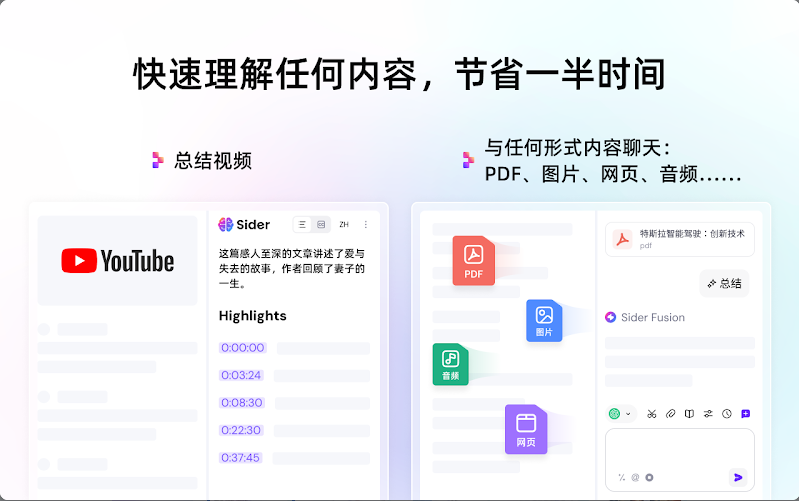 - 视频杀手锏:贴视频链接,Sider生成字幕+关键点总结(适合假装看完会议录像)。