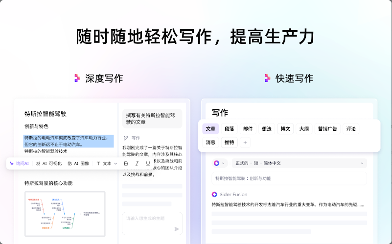 - 场景:老板突然让你写产品介绍?在Sider输入“帮我想个智能水杯的广告词”,10秒生成5个版本,还能一键优化语法。