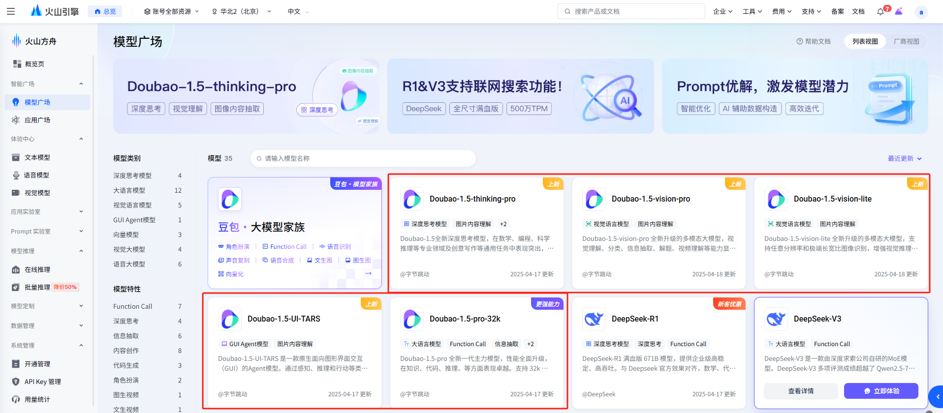 2️⃣ 登录火山引擎后,在模型广场选择你中意的模型进行体验