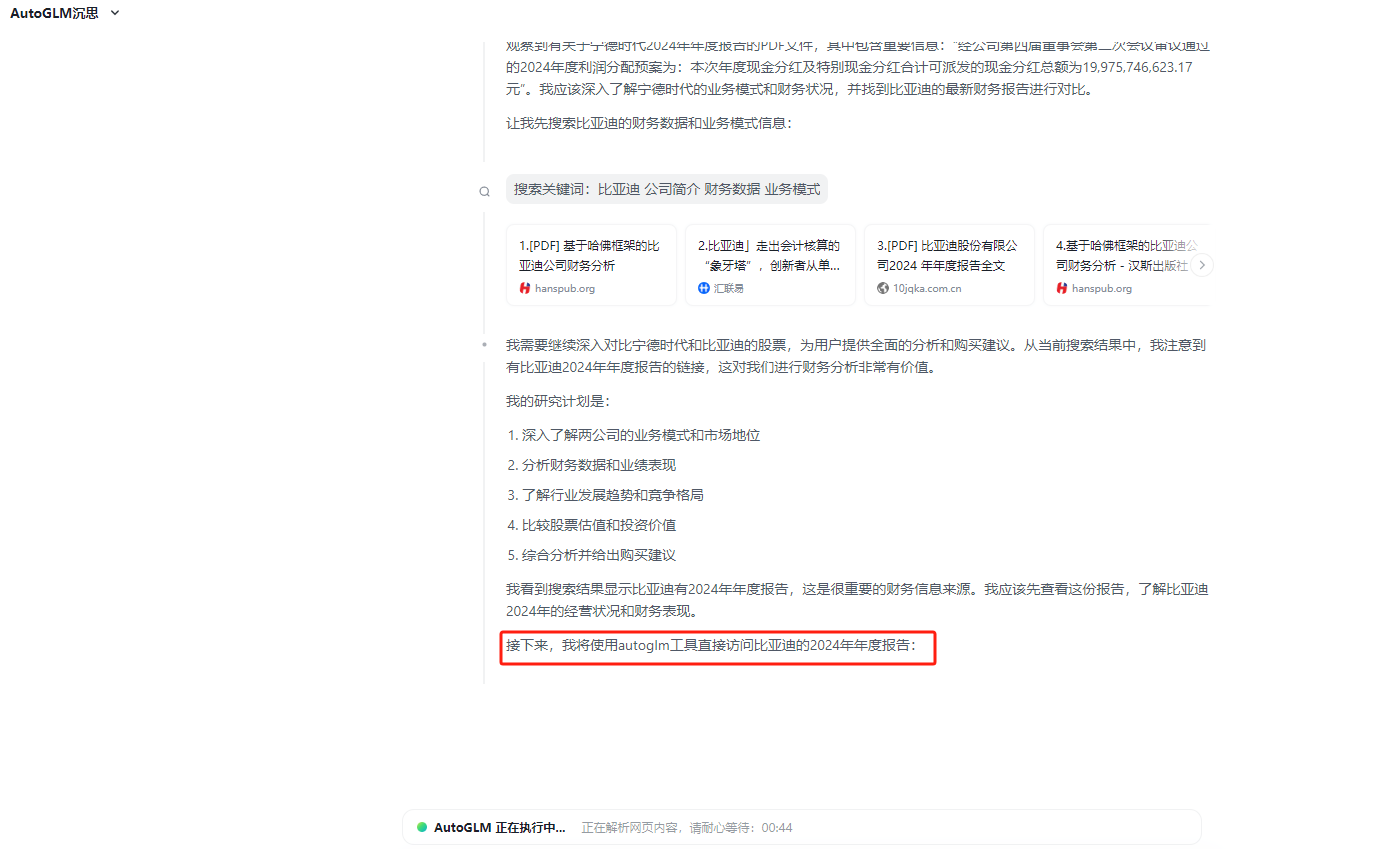 - AutoGLM:还在读比亚迪2024年的年度报告。。。