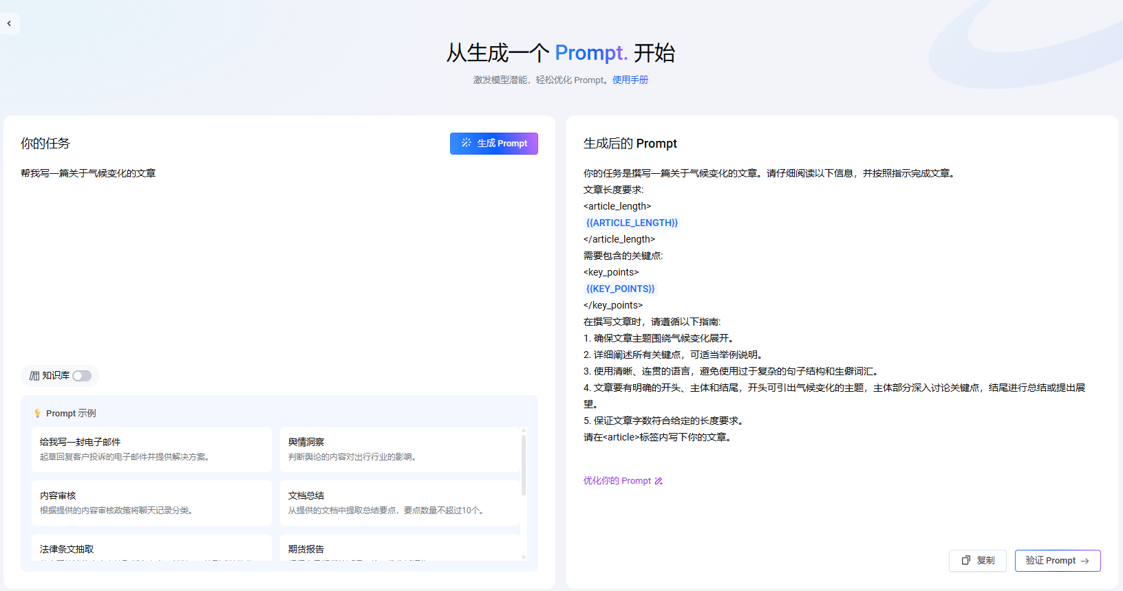 比如普通的"帮我写一篇关于气候变化的文章",优化后变成了