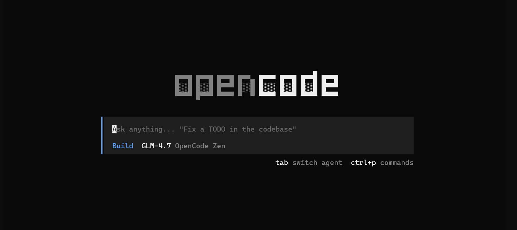 - 启动 OpenCode:终端模式下输入