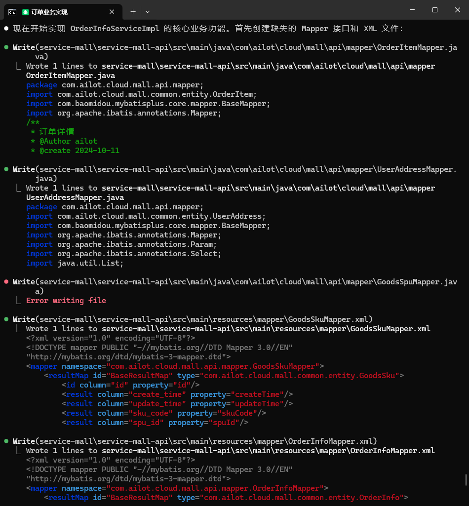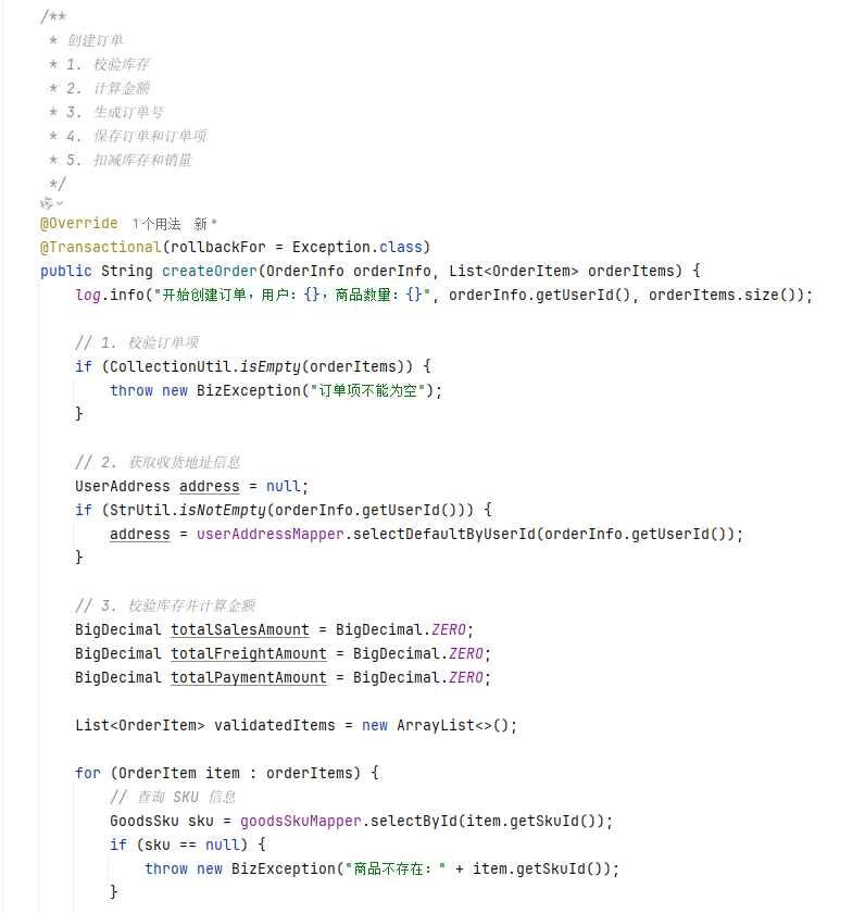 来点复杂的——实现 OrderInfoServiceImpl 的核心业务:创建订单、订单支付、订单状态流转。