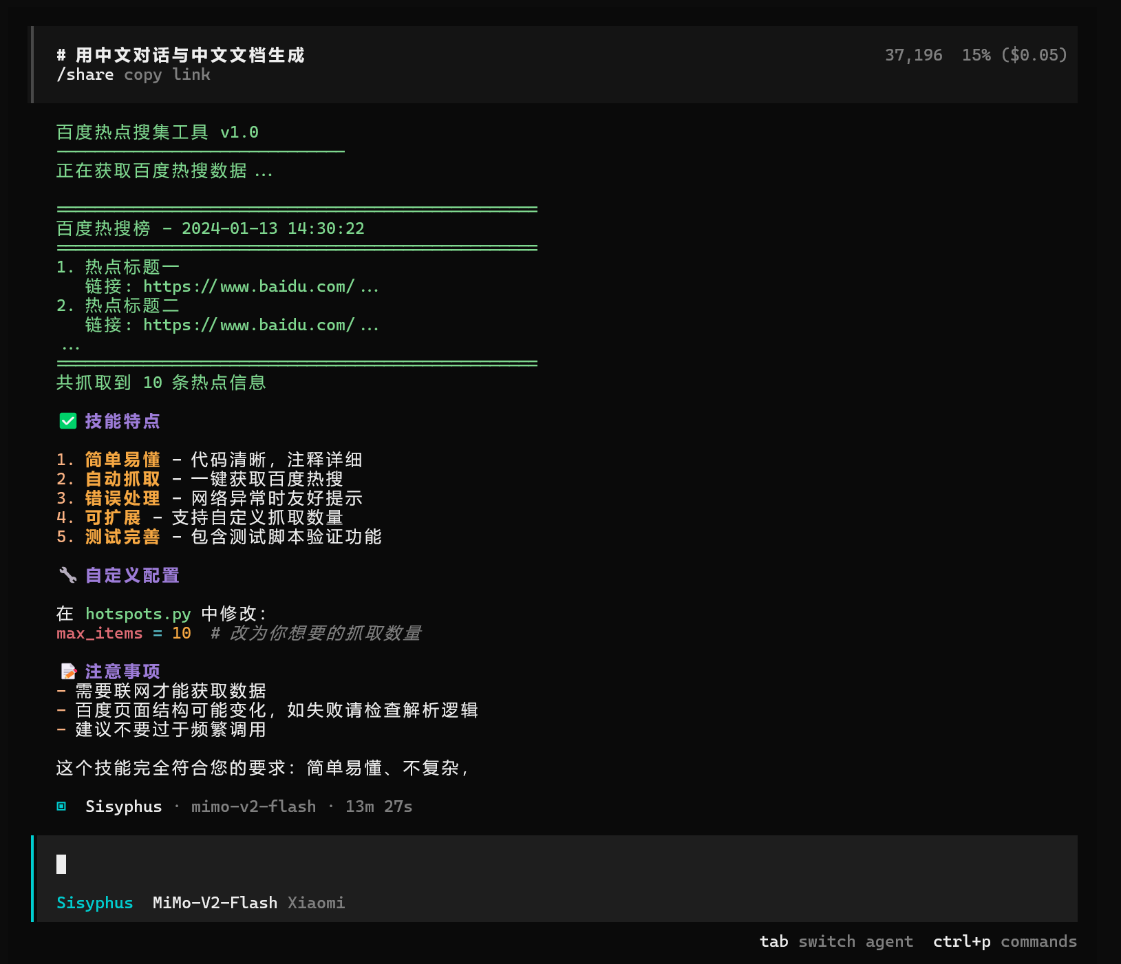 制作一个百度热点数据抓取的skill哼哧哼哧的就干完了!!!