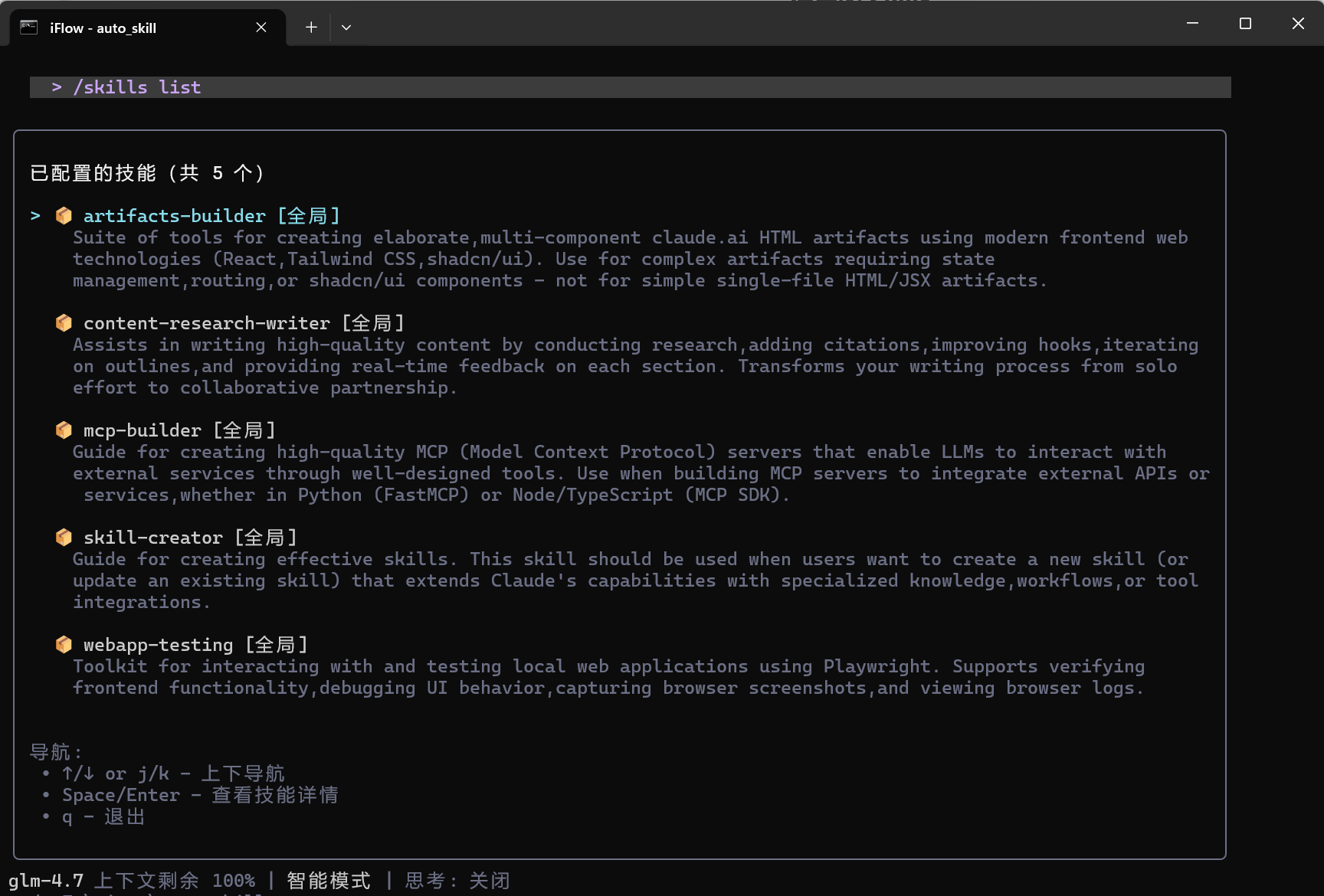 /skills list如果能看到如下输出,说明 Skill 已成功加载。