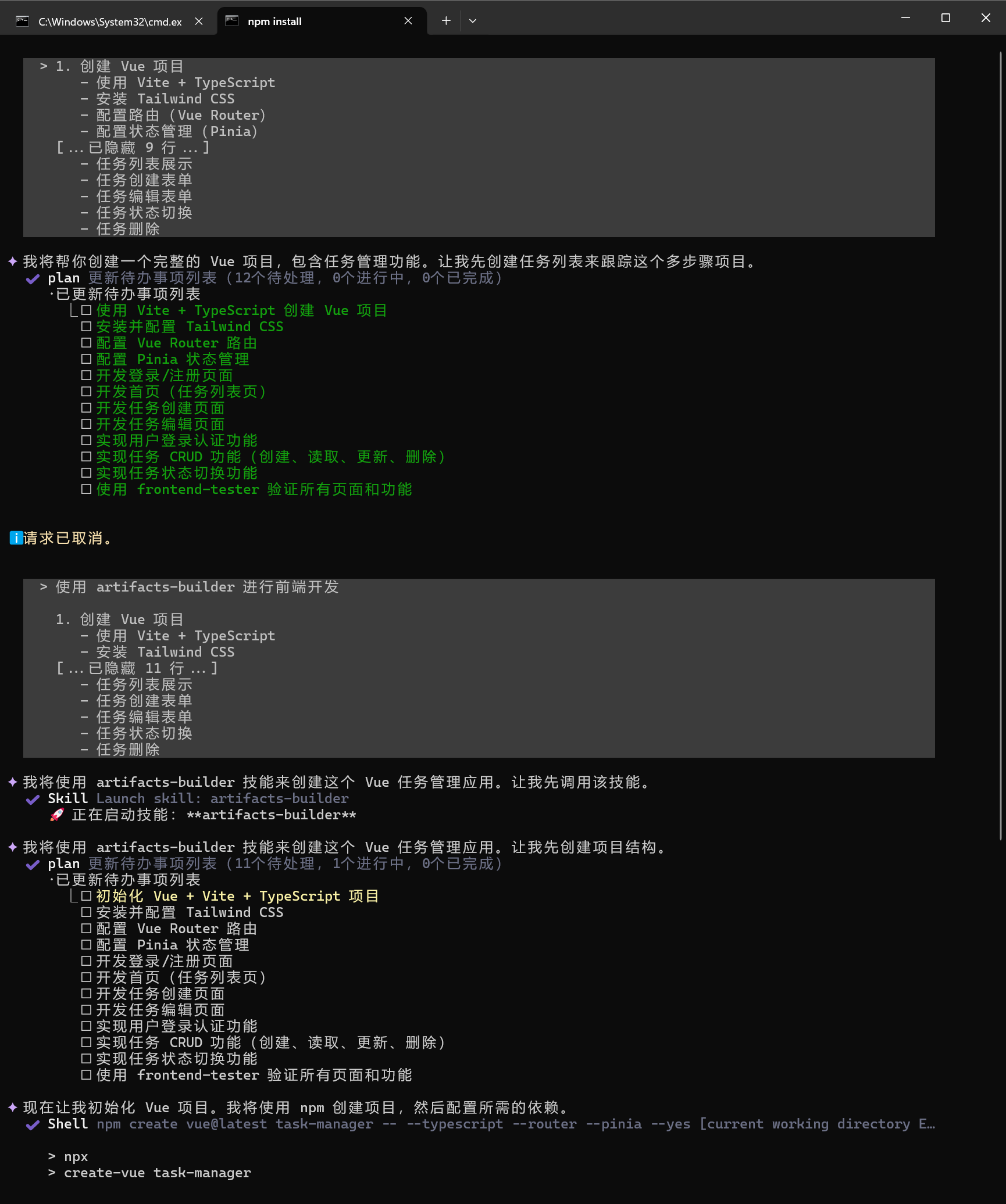 使用 artifacts-builder 进行前端开发: