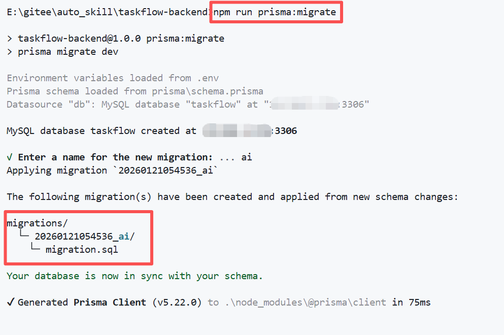 如果在提示词里把数据库信息写全,理论上可以直接自动建库建表。