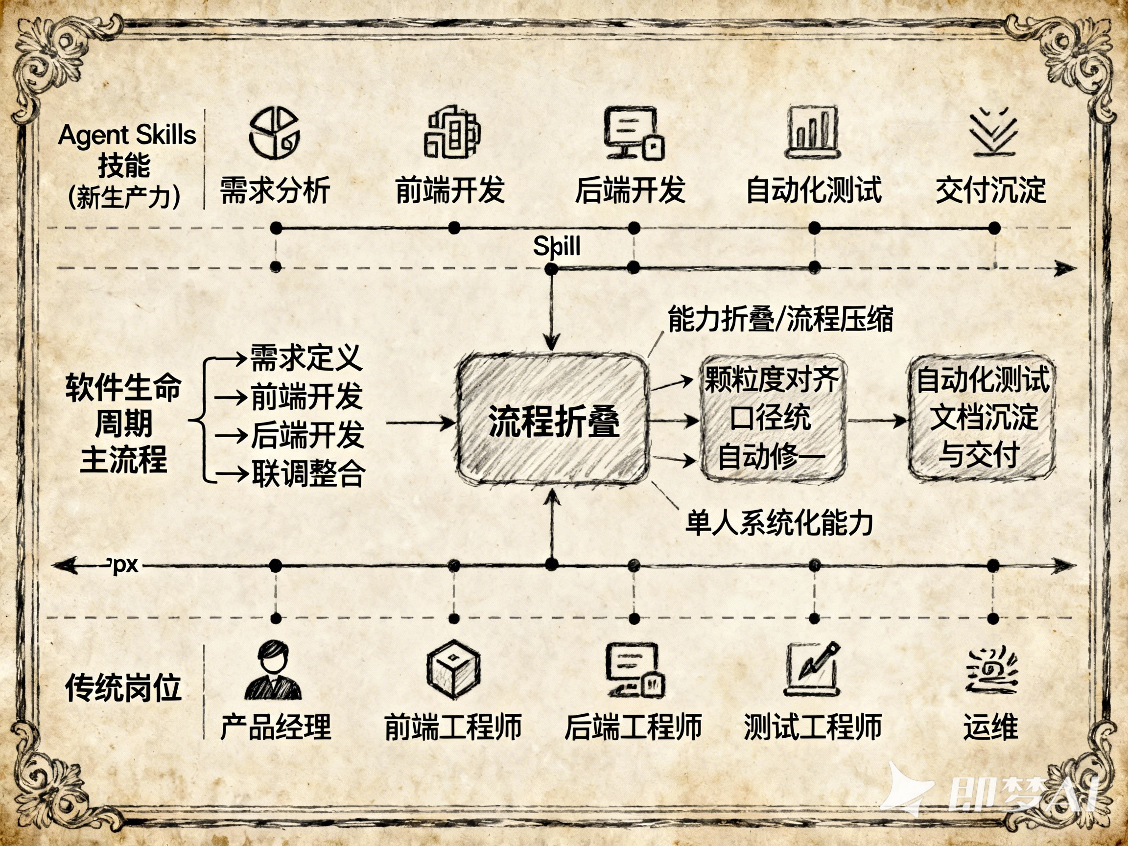 以前一个像样的项目,产品写需求、开发写代码、测试测功能,来回对齐几轮,少说也得几天起步。现在用一组 Agent Skill,从需求拆解到前后端开发,再到全量测试,基本都能自己跑完,一个人就能把一条完整链路拉起来。